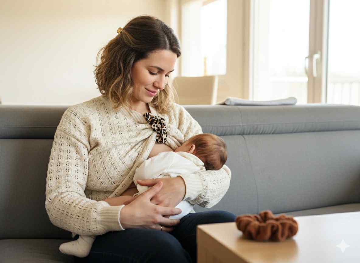 Allaiter en toute liberté avec ce chouchou 2-en-1, à la fois accessoire cheveux élégant et allié discret pour un allaitement pratique et intime.